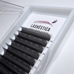 Blister de pestañas sintéticas elaboradas con fibra PBT, suaves y flexibles.